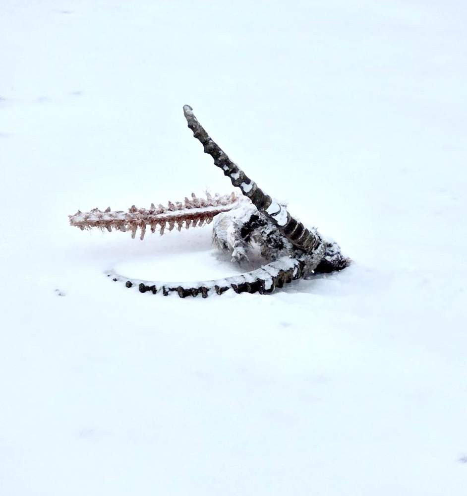 На ледяном панцире водохранилища участники рейда часто фиксировали останки копытных животных - сибирских горных козлов и косуль. Чаще всего подобные «давки» являются результатом охоты волков, которые выгоняют своих жертв на скользкий лёд, где те становятся беспомощными. Опытные инспекторы обратили внимание, что большинство жертв являются результатом охоты крупных пернатых птиц, так как волчьи следы вблизи находок отсутствовали.