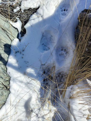 «Следы жизнедеятельности снежных барсов встречались повсеместно: от типичных поскрёбов и задиров на деревьях до свежих отпечатков лап на снегоходных дорогах», - рассказывают участники экспедиции.