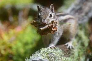 Летом меню меняется: бурундук переключается на ягоды и грибы. Однако в условиях Горного кластера национального парка основу его питания составляют кедровые орешки.