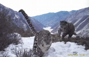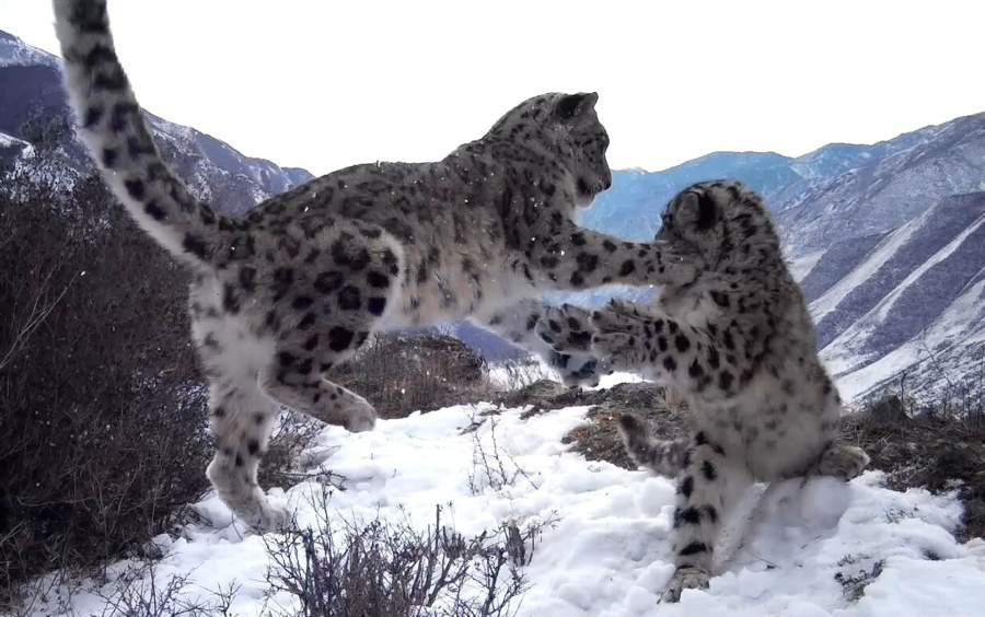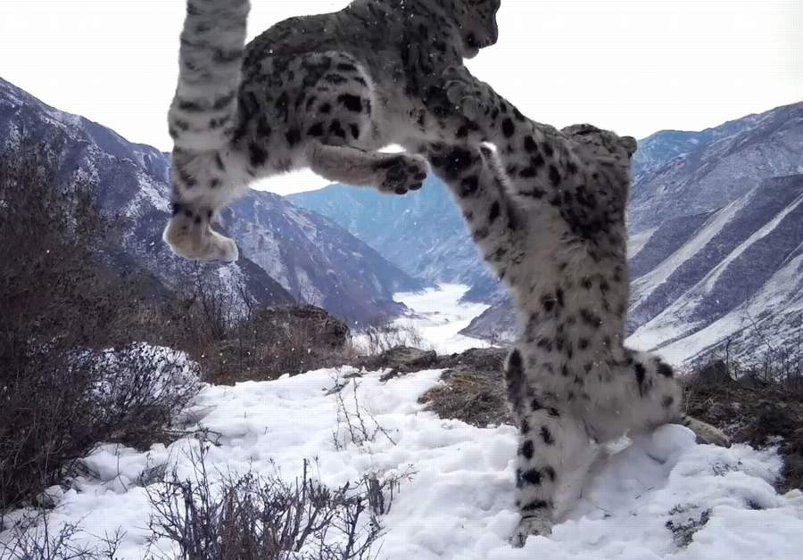 На территории заповедника установлены почти сотня фоторегистраторов, которые приносят унциальные материалы. На одной из видеозаписей молодые ирбисы увлечённо подкарауливают друг друга, внезапно атакуют, сносят с лап собратьев, сбиваются в общий клубок и вместе кувыркаются. Особый интерес у малышей вызывает и сам объект съёмки: они пытаются сорвать его с места установки, тянут за ремень и внимательно изучают устройство.