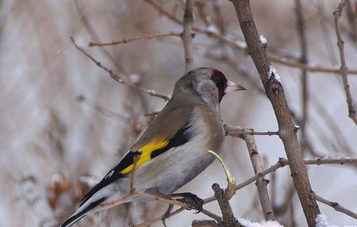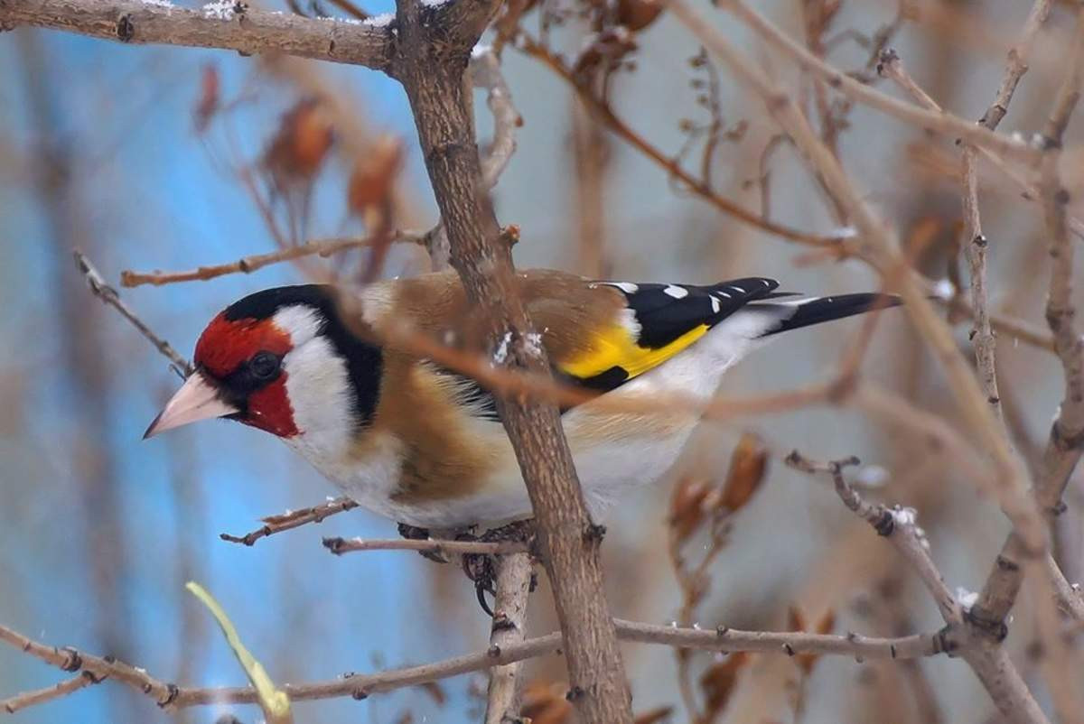 Нынешняя зима в Перовском лесничестве национального парка оказалась «богатой» на щеглов, причем не только на черноголовых, более типичных для горной местности, но и на гибридных особей.