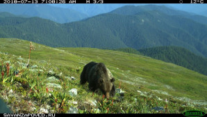 Автоматические регистраторы на территории Саяно-Шушенского заповедника запечатлели интересные кадры "тропления по крови" - два медведя преследовали раненого марала, по кровавым следам определяя направление.