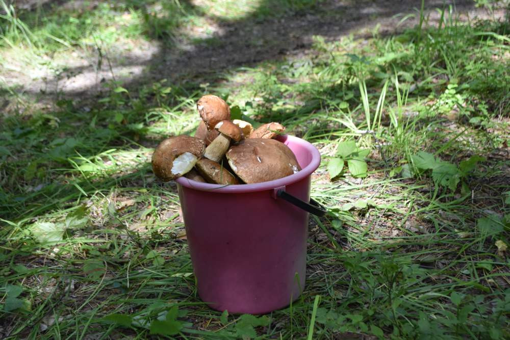 Буквально за несколько десятков минут мы набрали полное ведро грибов и ещё немного - в холщовую сумку. Рассчитывали, что наберём ещё, но, увы, в других местах их уже не было - сорвали другие счастливчики.