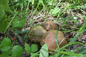 Когда приехали на своё заветное место, сразу поняли, что сегодня вряд ли мы нарвём много лисичек. Похоже, сразу после нас здесь побывало много грибников, и оттого трава кругом была утоптана словно футбольное поле.