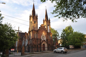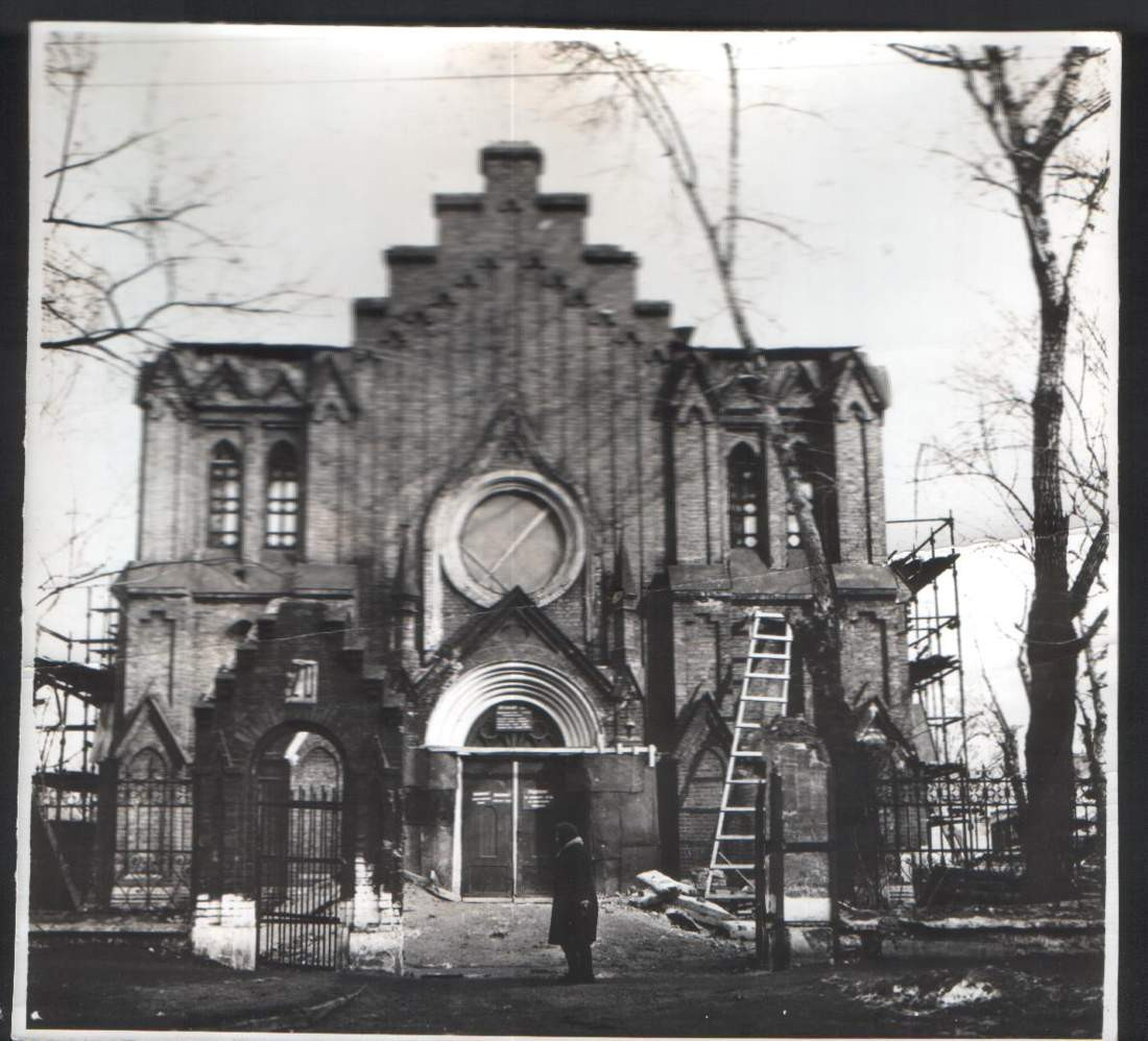 Мой тесть - И. И. Быстров, заведовавший в ту пору железнодорожным клубом имени Карла Либкнехта, вспоминал, как он нашёл несколько органных труб, валявшихся в снегу, которые использовались самодеятельным театром для производства шумовых эффектов при постановке "пролетарских" спектаклей. Внутреннее пространство костёла было совершенно варварски изуродовано устройством трёх (!) этажей с тесными клетушками кабинетов, для которых в готических фасадах, не считаясь с их архитектурно-тектонической структурой, прорубались новые оконные проёмы. Поначалу в изуродованном здании расположился радиокомитет, позже - кинокомплекс краевого телевидения.