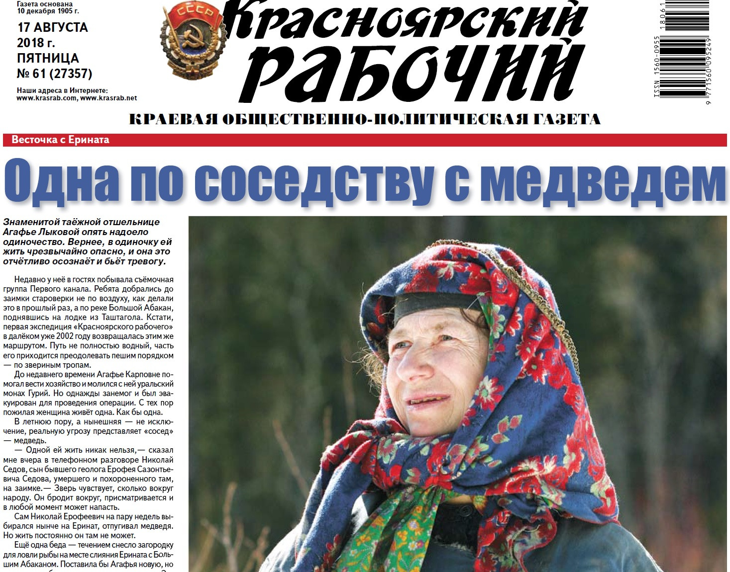 О чём пишет «Красноярский рабочий» в пятницу, 17 августа 2018 года