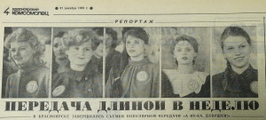 Накануне 1986 года красноярцы получили особый "подарок" - редкую в те времена возможность стать участниками "телешоу": "Десятки красноярцев, принявших участие в съёмках заключительных этапов конкурса во Дворце труда и снежном городке возле него, уже знают имя победительницы..." ("Красноярский комсомолец", 1985).