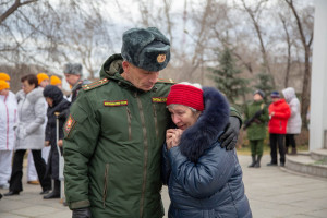 У обелиска "Сыновьям Хакасии, погибшим в локальных войнах" почтить память собрались семьи военнослужащих и сотрудников МВД, представители государственных структур, общественных организаций, и просто неравнодушные жители республики.
