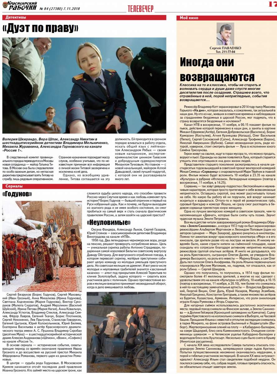 О чём пишет "Красноярский рабочий" в среду, 7 ноября 2018 года