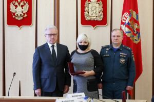 Александр Усс передал ордена Мужества семьям погибших красноярских пожарных