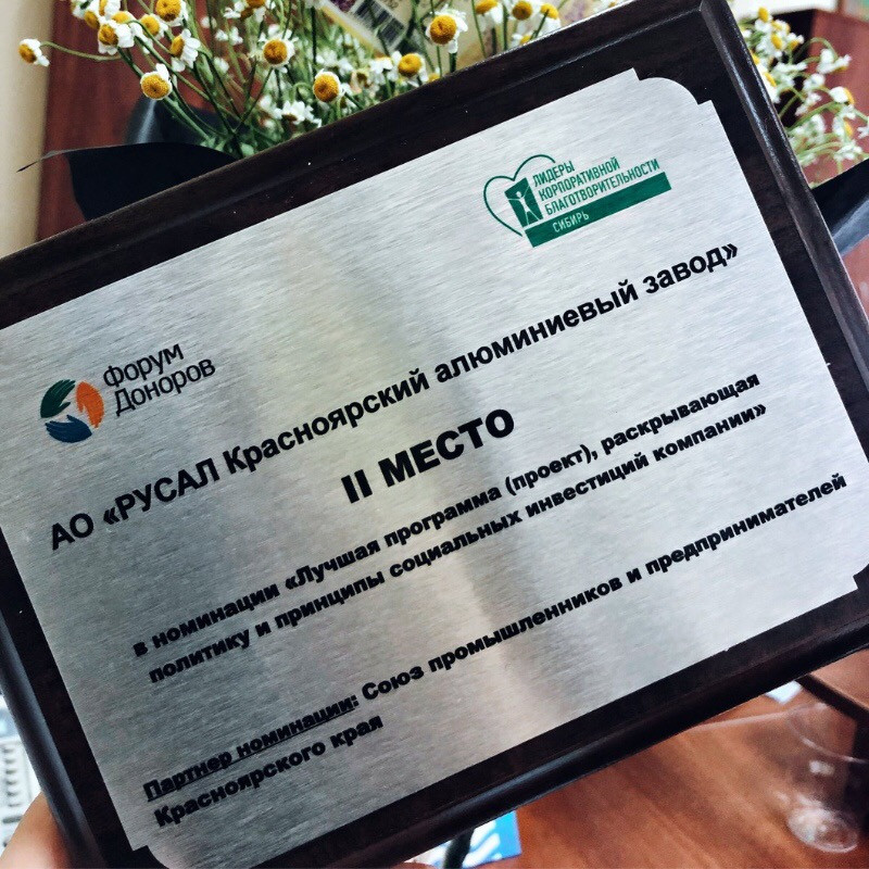 В конкурсе "Лидеры корпоративной благотворительности - Сибирь" проект РУСАЛа экомарафон "День Енисея" занял 2-е место в номинации "Лучшая программа (проект), раскрывающая политику и принципы корпоративных социальных инвестиций компании". Итоги были подведены 20 ноября в Новосибирске.