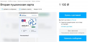 Красноярцы продают "Пушкинские карты" в интернете за 1100-1500 рублей