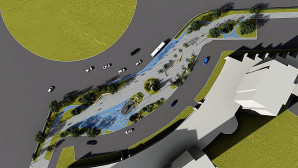 "Мы переносим скульптурную группу "Похищение Европы" на южную сторону площади и делаем её тактильно доступной для горожан. Бык плывёт по воде, условно - по Енисею, вода выделена пятном синей брусчатки, перед ним вздымается холм как символ вздымающейся воды, за ним шлейф из бревён - в память о том, что по Енисею раньше сплавляли лес, брёвна", - рассказал главный архитектор мастерской Андрей Лябчук.