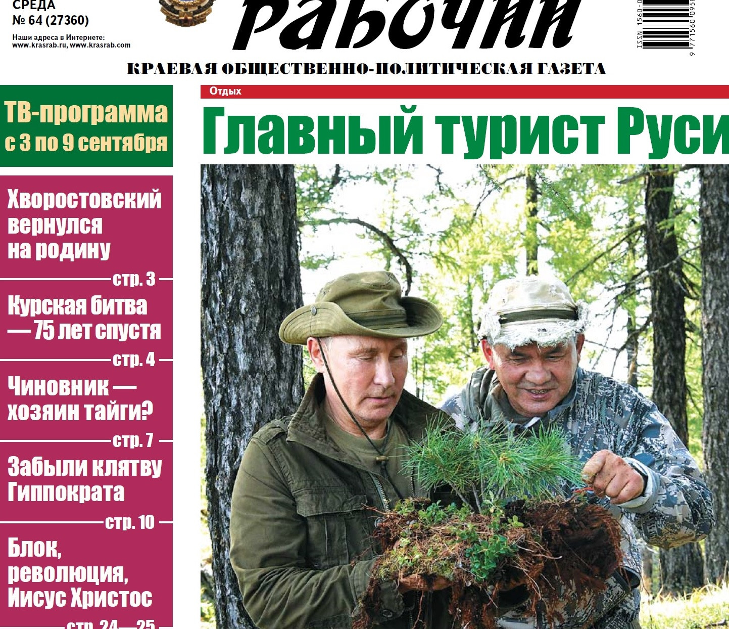 ПЕРВОПОЛОСНОЕ: ГЛАВНЫЙ ТУРИСТ РУСИ