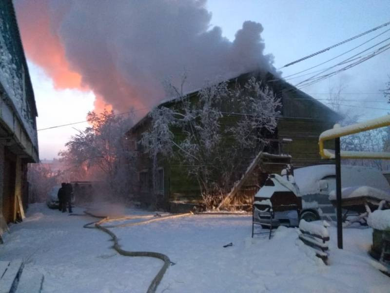 В Якутске сегодня утром, в 7 часов 41 минуту местного времени, возник пожар в двухэтажном деревянном многоквартирном жилом доме на улице Семёна Данилова.