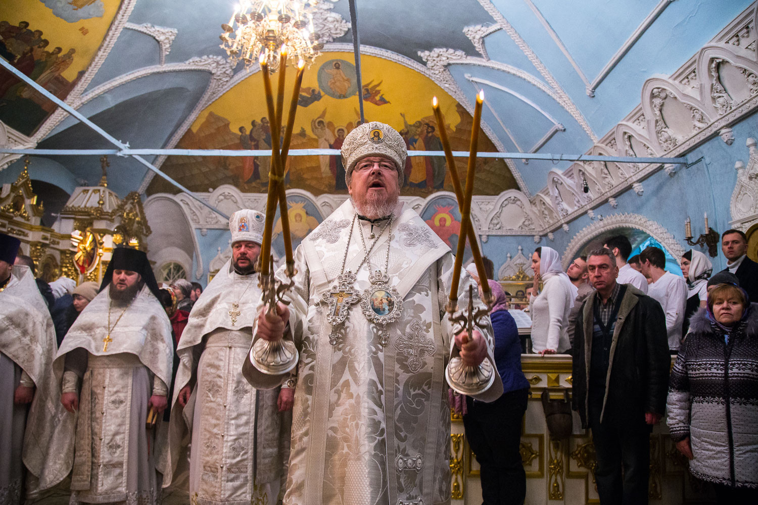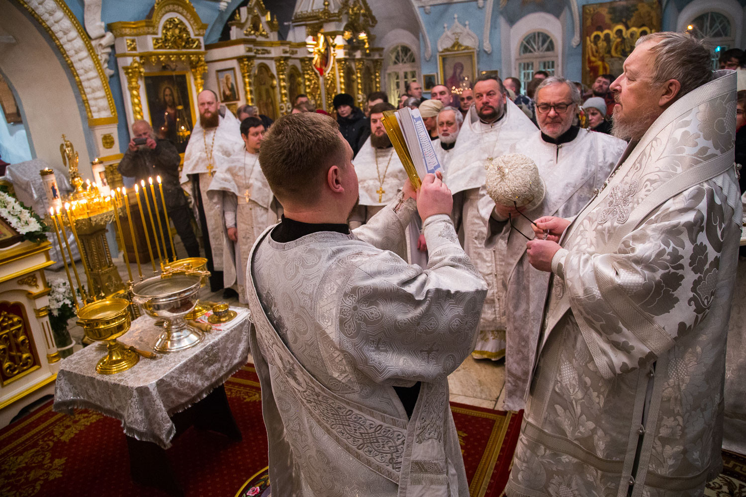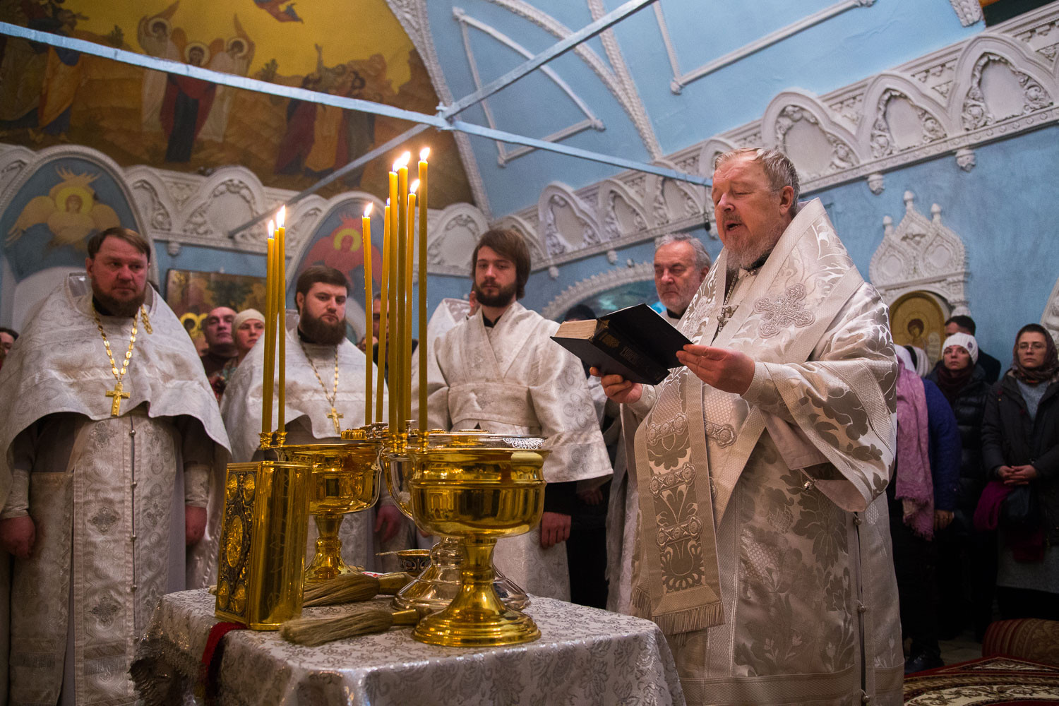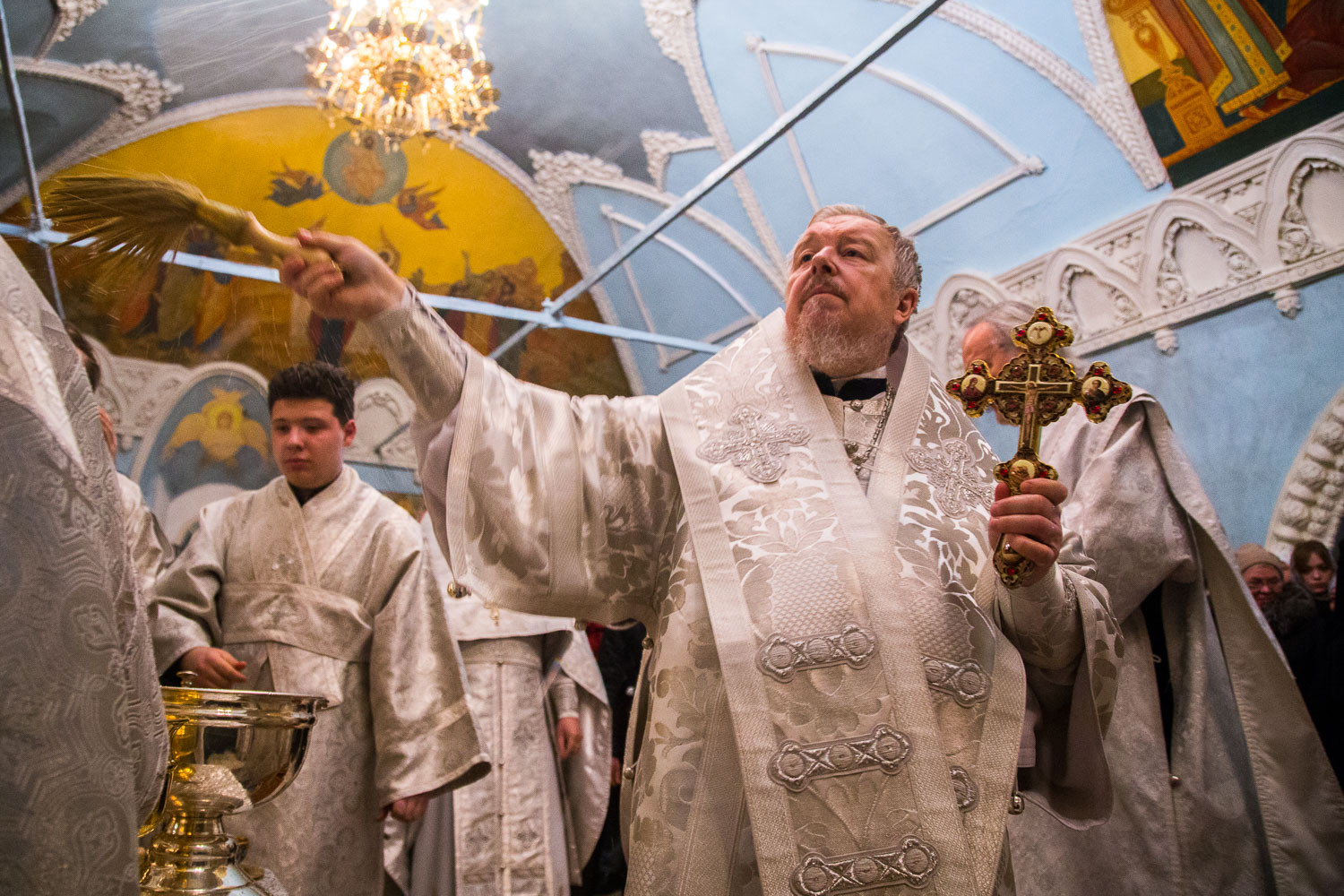 По окончании Литургии Владыка Пантелеимон совершил чин великого освящения воды и окропил ею многочисленных верующих, пришедших в собор. Затем он поздравил паству с праздником Богоявления: