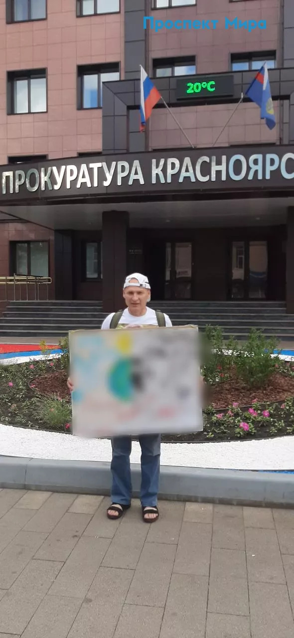 Красноярец провёл акцию протеста с детским рисунком в руках