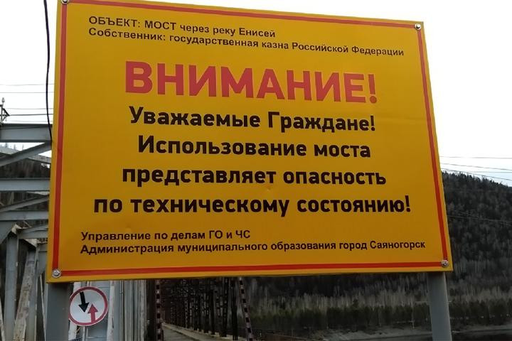 Мост через Енисей в Хакасии признали опасным для автомобилей и пешеходов