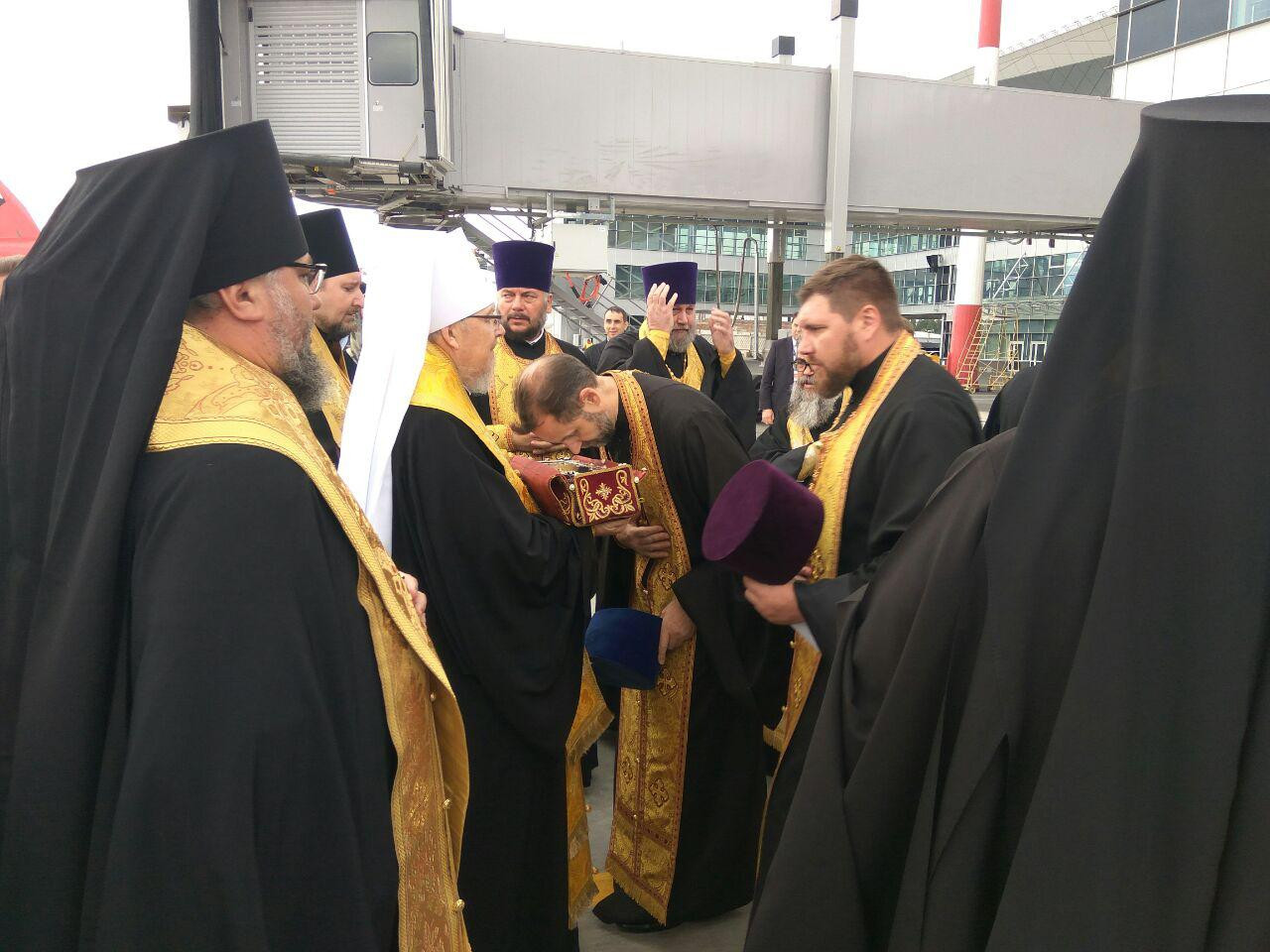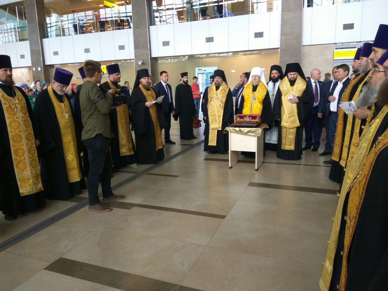 Встречу святыни и молебное пение перед ковчегом в здании аэропорта возглавили глава Красноярской митрополии Митрополит Красноярский и Ачинский Пантелеимон, управляющий Канской епархией Епископ Канский и Богучанский Филарет и управляющий Енисейской епархией Епископ Енисейский и Лесосибирский Никанор.