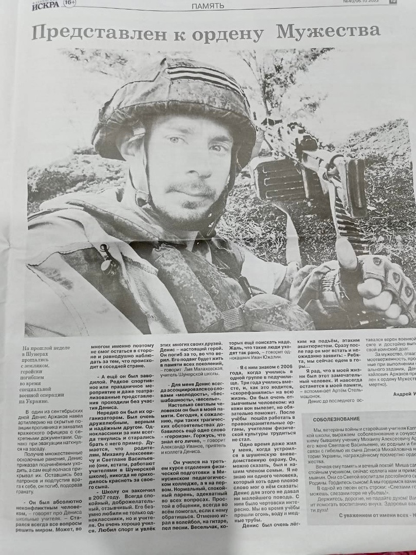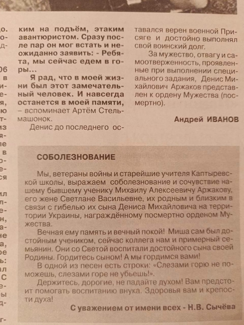 В ходе спецоперации погиб Денис Аржаков из села Шунеры Шушенского района. Он сражался на Херсонском направлении.