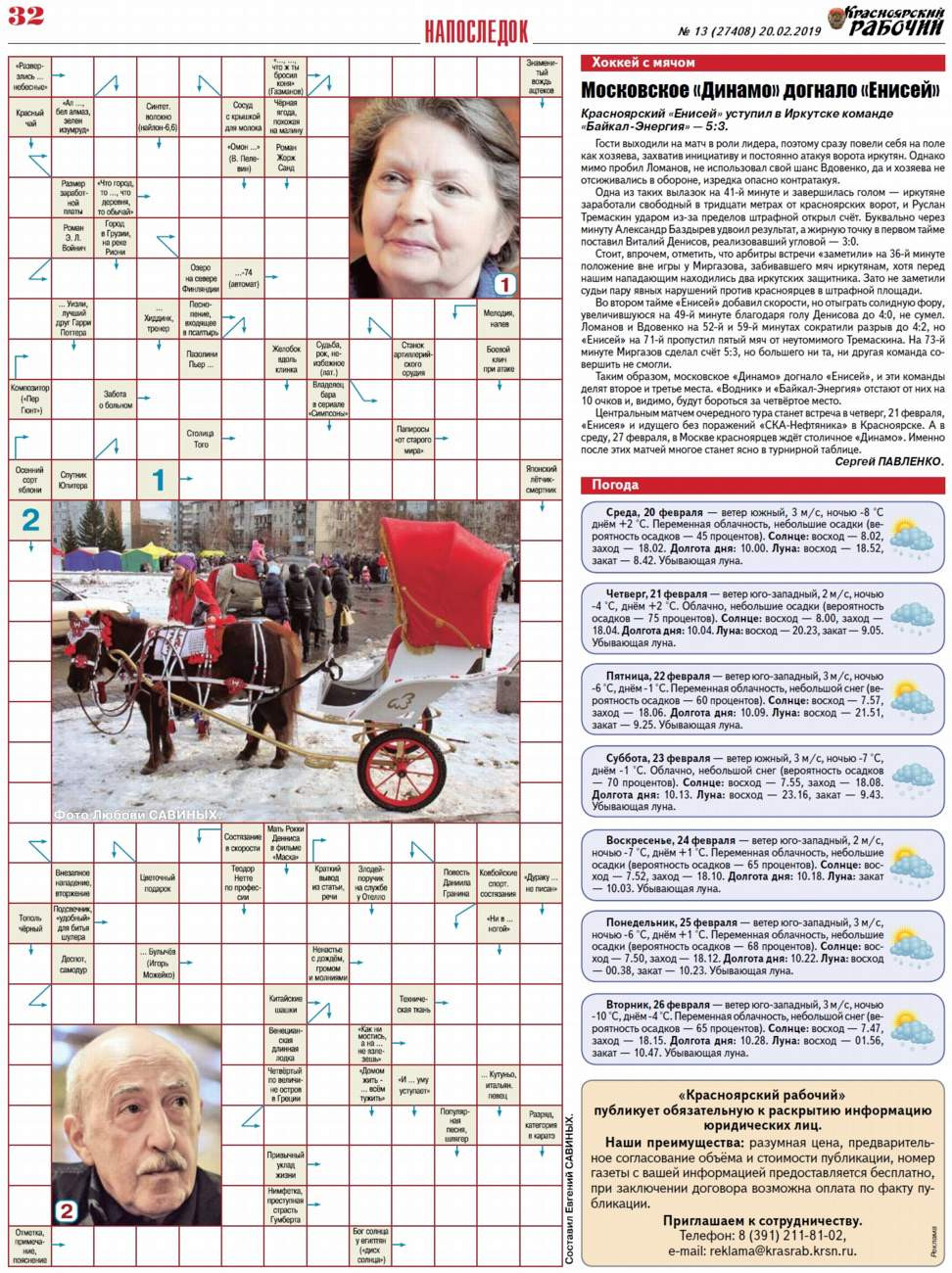О чём пишет "Красноярский рабочий" в среду, 20 февраля 2019 года