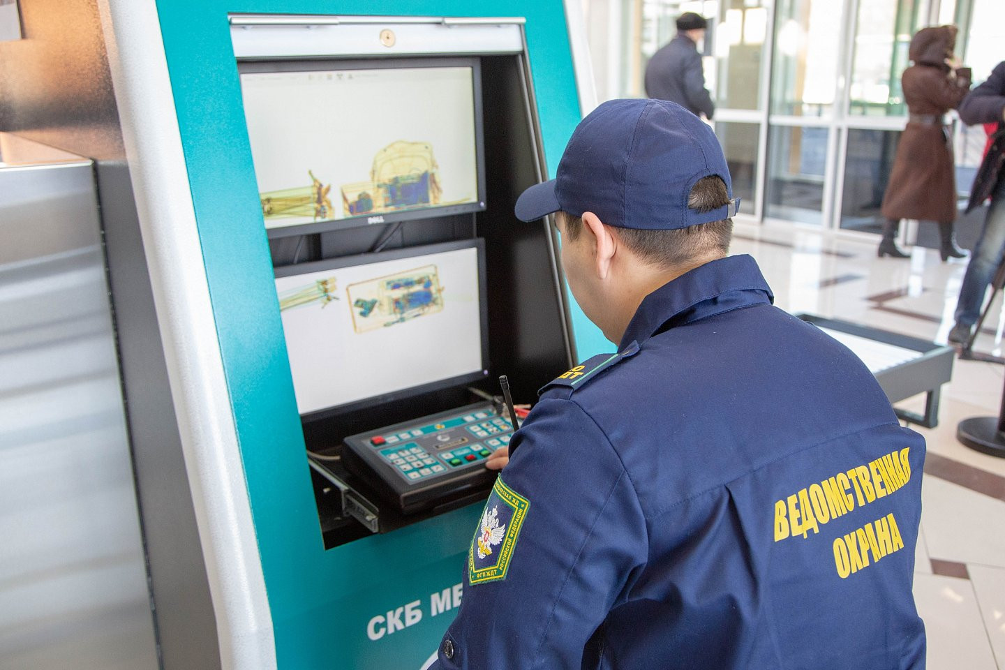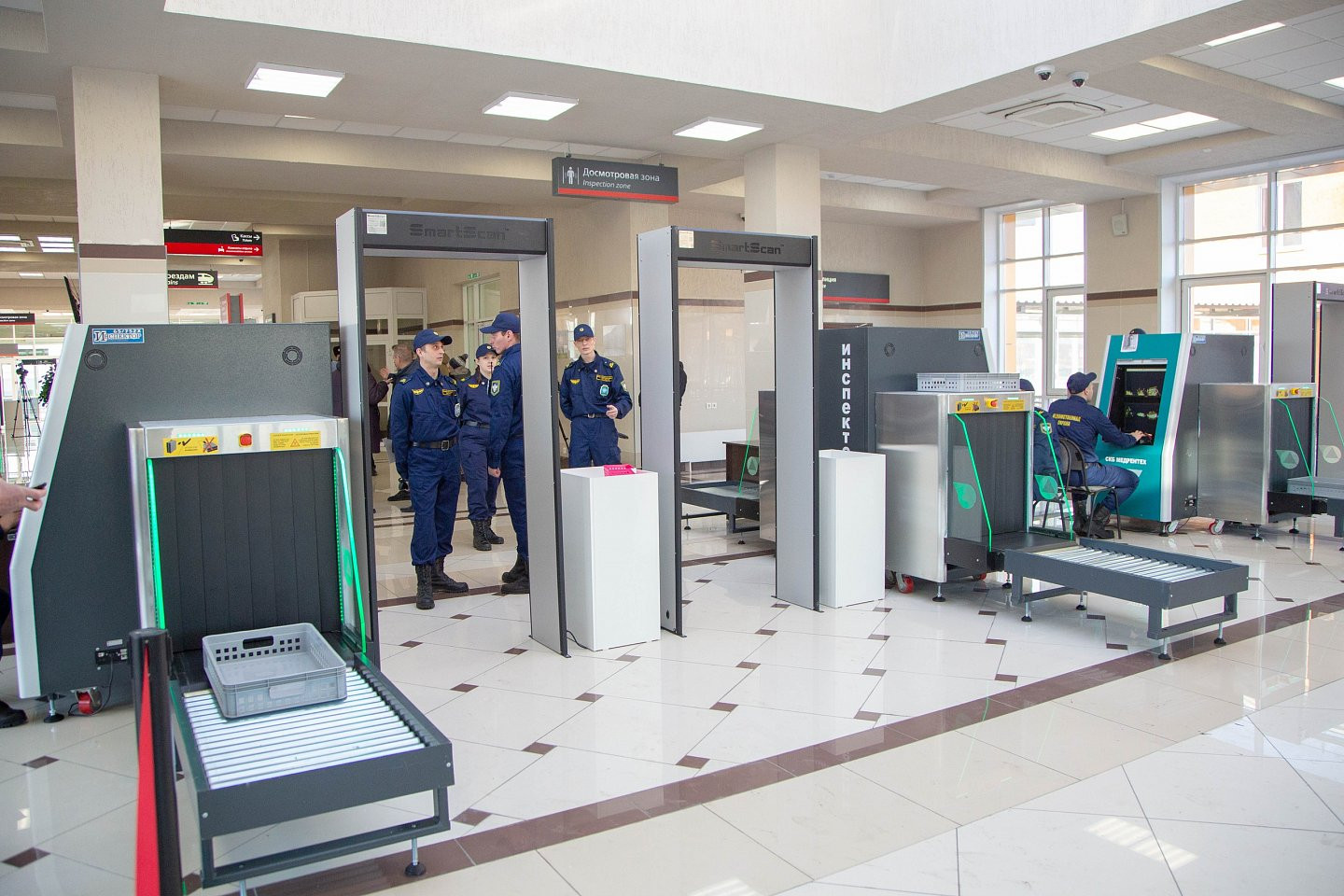 На входе в павильон расположена зона досмотра, включающая металлодетекторы, стационарные рентгеновские установки конвейерного типа и датчики радиационного контроля. Процедура входного контроля аналогична действующей в аэропортах. По всему периметру, а также внутри вокзального комплекса установлено более 60 цифровых видеокамер с высокоточным разрешением.