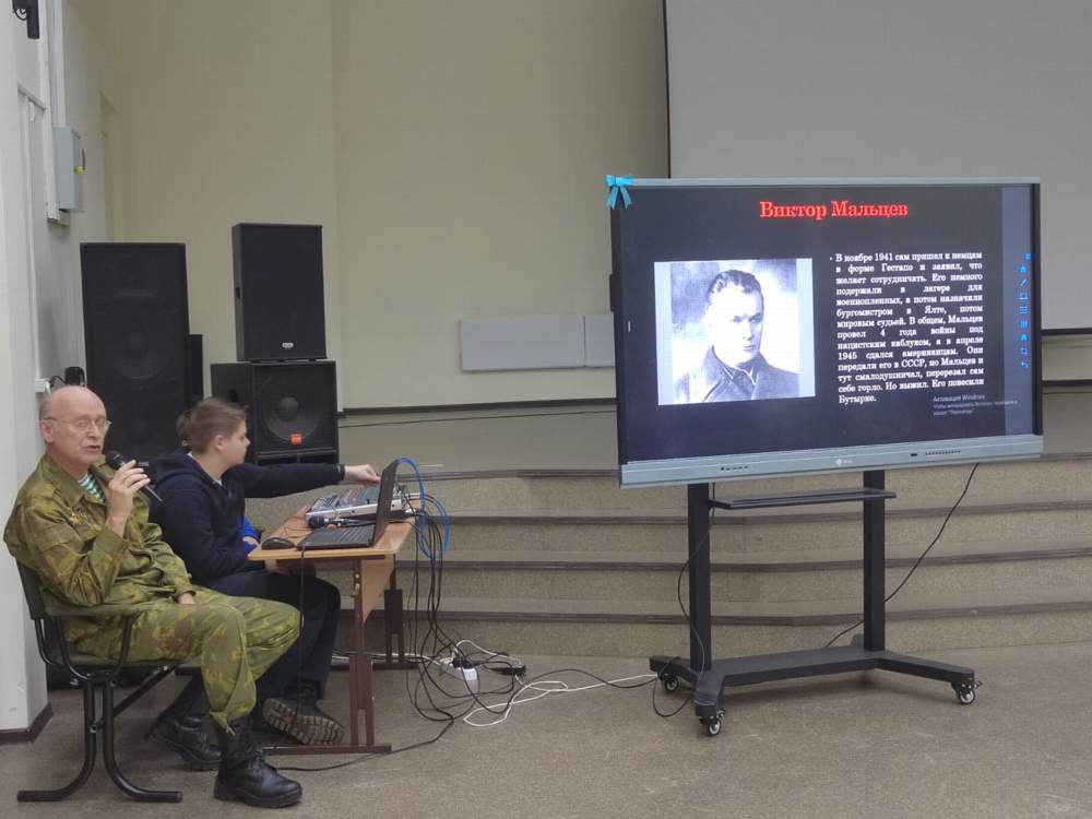 Присутствующие посмотрели презентацию, в которой были показаны самые яркие и страшные примеры предательства, нелюди, их совершившие, и их судьбы. Во время Великой Отечественной войны Антонина Макарова, "Тонька-пулемётчица", собственноручно расстреляла более 1 500 человек, Александр Юхновский, или "Алекс Лютый", принимал участие в казни более 2 тысяч советских граждан, Григорий Васюра, или "Палач Хатыни", участвовал в уничтожении жителей печально известной белорусской деревни Хатынь.