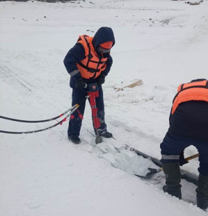 В заливе Шумиха спасатели распилили лёд, чтобы водители не выезжали на водохранилище