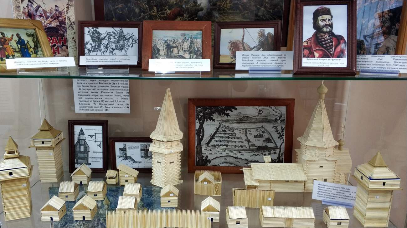Учителя истории собрали макет малого острога со Спасской, Быковской, Угольной, Водяной и Качинской башнями. На территории острога также «построили» конюшню, продуктовый склад, баню, колодец и избушку казаков.