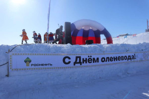 "День оленевода" прошёл здесь при организационной поддержке компании "Роснефть". Несмотря на экстремальный мороз - ниже минус 40 градусов, что при сильном ветре ощущалось как все минус 50 - праздник был по-настоящему тёплым.