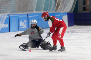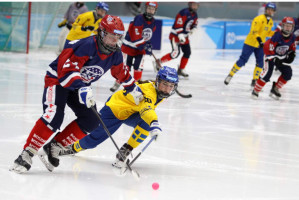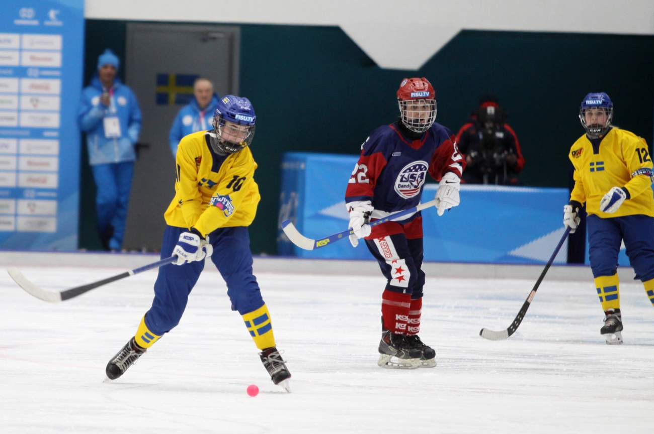 Первыми на лед вышли женские сборные Швеции и США. Преимущество скандинавских хоккеисток не вызывало сомнений. Первый мяч в истории хоккея с мячом на Студенческих играх на 2-й минуте матча забила Ида Фриман.