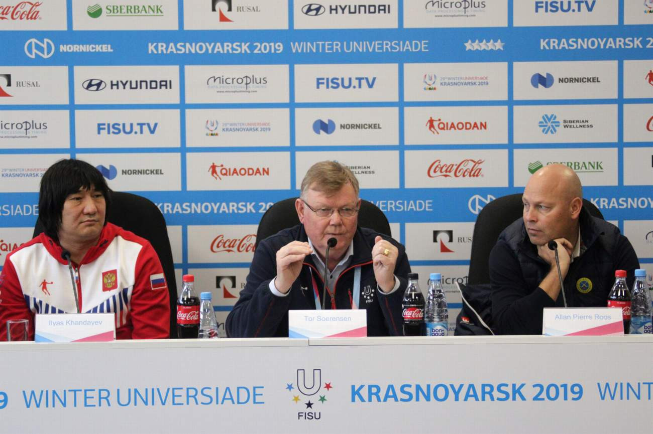 По окончании игры в пресс-центре стадиона «Енисей» состоялся брифинг для СМИ, в котором приняли участие технический делегат FISU Тор Соренсен и главные тренеры нескольких хоккейных команд-участниц Студенческих игр.