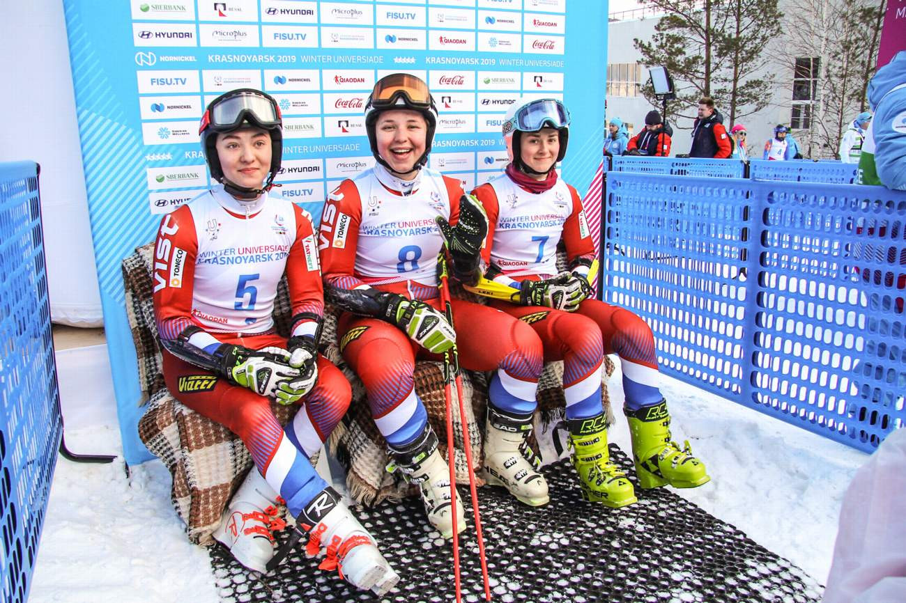 В соревнованиях по слалому-гиганту на Зимней универсиаде-2019 Екатерина Ткаченко, Юлия Плешкова, Анастасия Горностаева и София Крохина оказались самыми быстрыми на первой трассе.