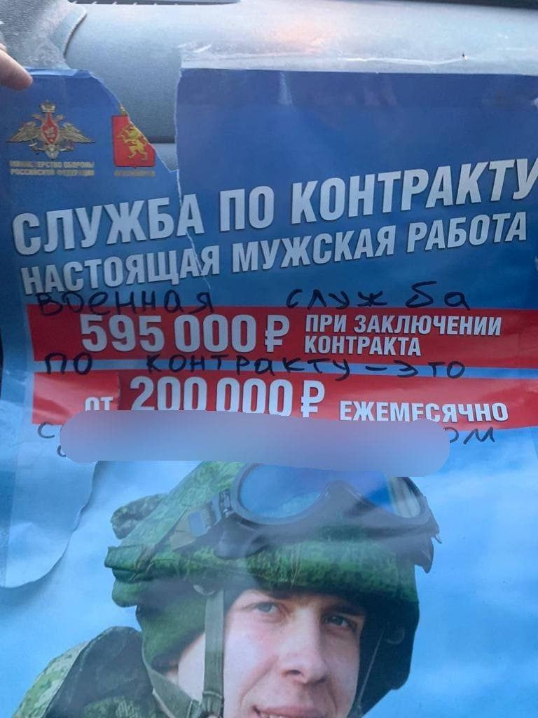 В Красноярске кто-то порвал плакат с рекламой службы по контракту и оставил надпись