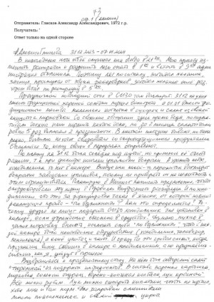 Соратники арестованного депутата Законодательного Собрания Красноярского края от ЛДПР Александра Глискова опубликовали новое письмо народного избранника. Он рассказал, как провёл праздники в СИЗО.