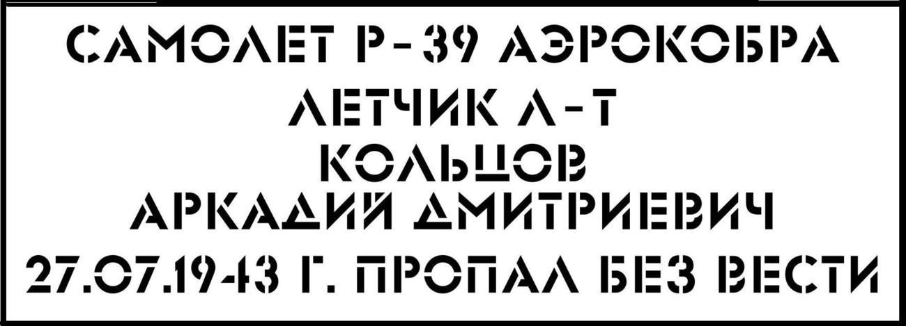 Табличка для памятного знака на месте гибели Кольцова была изготовлена пять лет назад. И только недавно установили, что самолёт лейтенанта Кольцова разбился примерно в 30 километрах северо-западнее мест аварии бомбардировщиков.