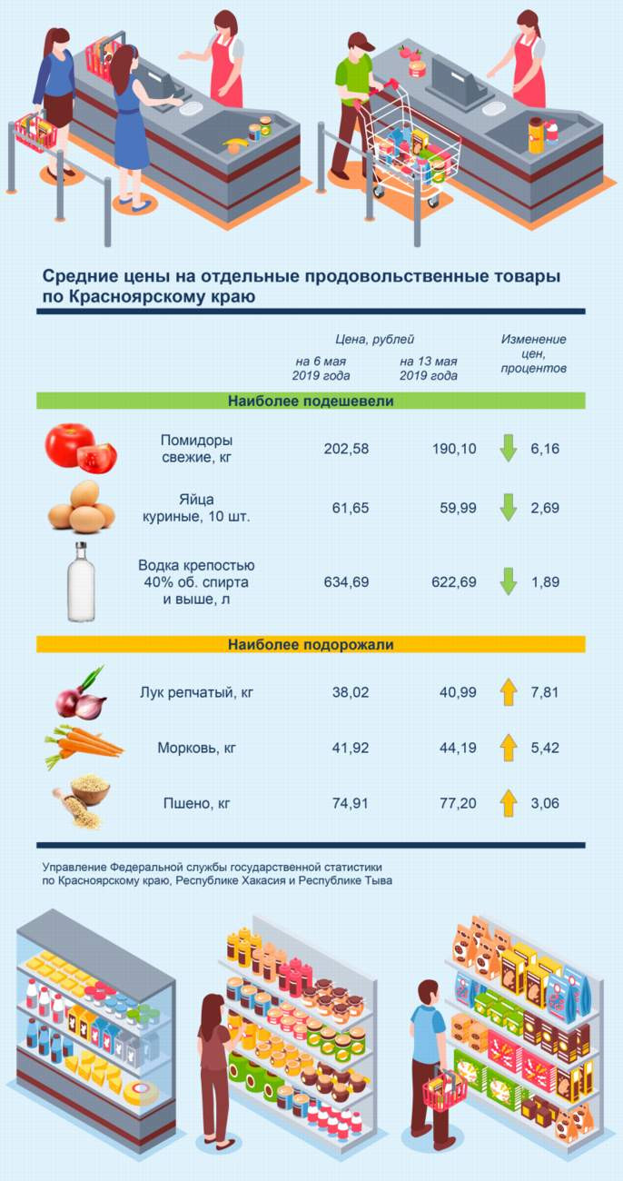 Управление Федеральной службы государственной статистики по Красноярскому краю, Республике Хакасия и Республике Тыва (Красноярскстат) подготовило очередной мониторинг средних цен на продовольственные товары по регионам Енисейской Сибири.