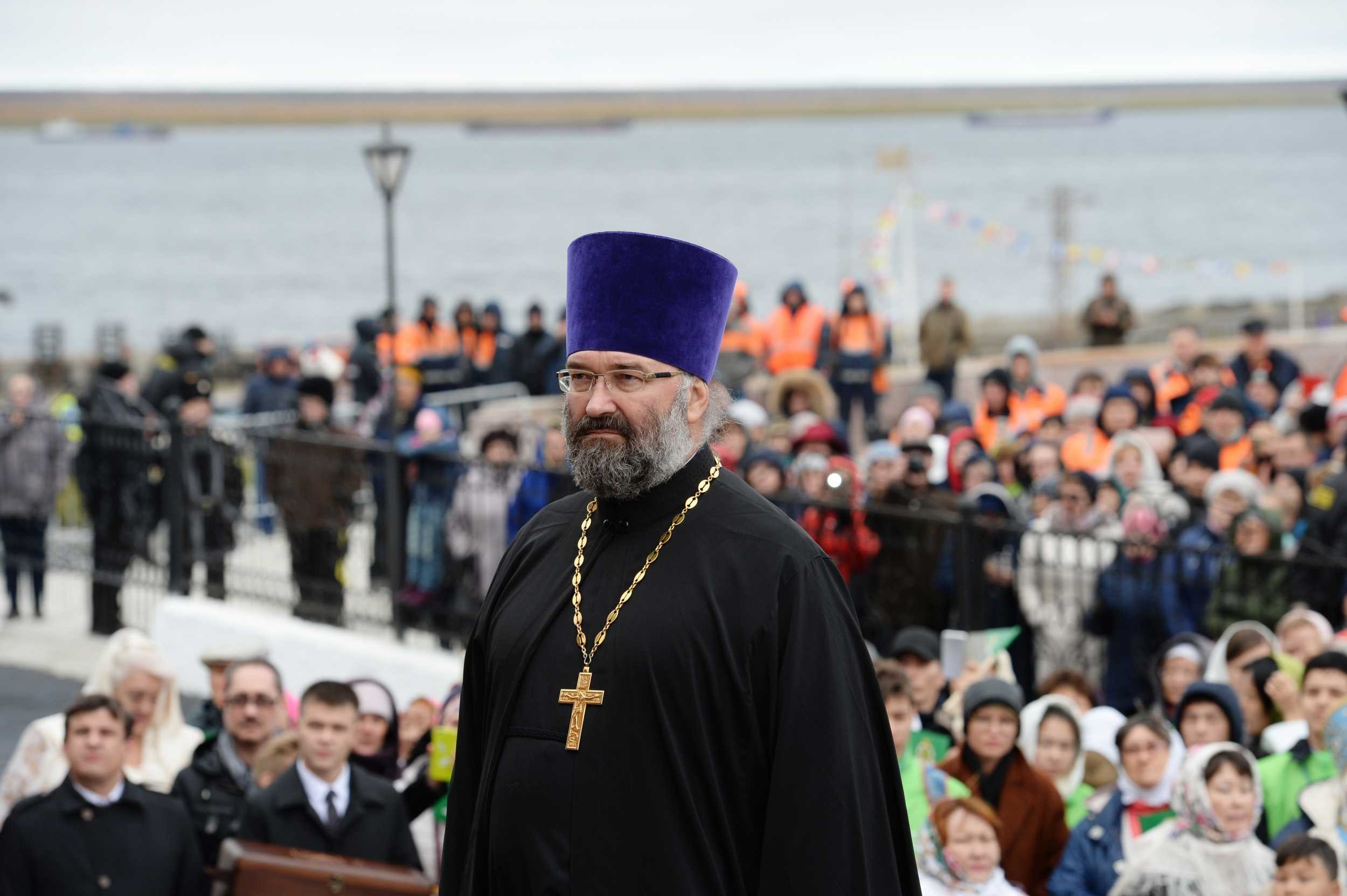 На площади перед храмом собрались работники Заполярного транспортного филиала ГМК «Норильский никель», сотрудники морского порта «Дудинка», жители города.