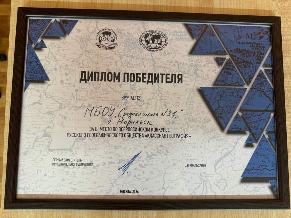 Объявлены победители всероссийского конкурса Русского географического общества «Классная география». В их числе - средняя школа № 31 из города Норильска, которая заняла третье место.