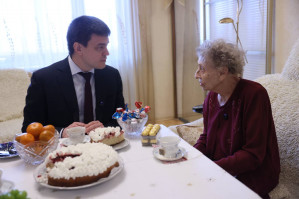 Юбиляршу поздравил губернатор Красноярского края Михаил Котюков, побывавший у неё в гостях.