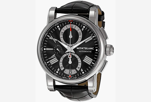 Это мужской хронограф Montblanc Star Chronograph (референс 102377) в 44-миллиметровом стальном корпусе, оснащенный автоматическим механизмом.