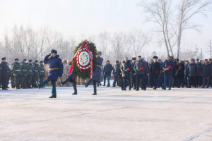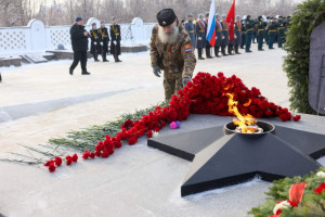 Почтив память героев Великой Отечественной войны и других конфликтов минутой молчания и оружейным салютом, участники церемонии возложили цветы к Вечному огню.