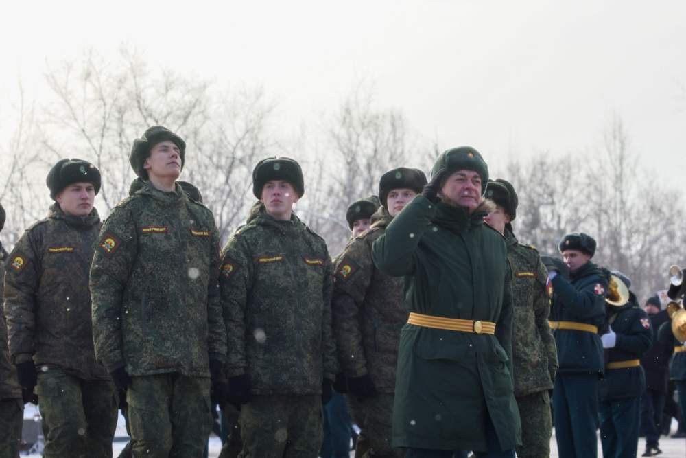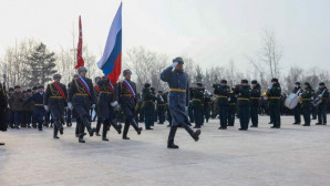 Ветеран Великой Отечественной войны, почётный гражданин города Красноярска Семён Гришанов поздравил собравшихся с Днём защитника Отечества и поблагодарил нынешнее поколение за бережное отношение к памяти героев Великой Отечественной.