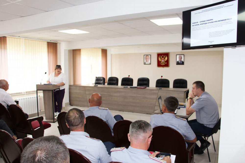 Соавтор проекта, координатор исследований Ирина Решетникова провела научно-исторический экскурс для личного состав управления пенитенциарного ведомства. В ходе лекции «Енисей - сердце Сибири: история, природа и культура великой реки» слушатели познакомились с особенностями водной артерии - реки Енисей. Флора и фауна, специфика хозяйственной деятельности, культурное наследие коренных народов региона представлены на основе научных, этнографических и музейных материалов. В завершении лекции она провела презентацию фотоальбома.