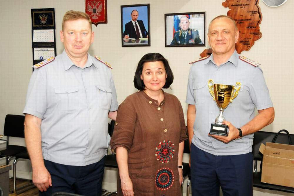 Директор Минусинского краеведческого музея имени Н. М. Мартьянова Светлана Борисова в знак признательности за поддержку проекта вручила фотоальбомы начальнику регионального управления ФСИН Андрею Мисюре для организации работы с личным составом по изучению наследия и истории родного края.