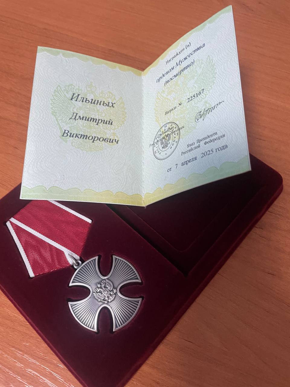 Указом президента России рядовой Дмитрий Ильиных был посмертно награждён орденом Мужества за отвагу и самоотверженность, проявленные при исполнении воинского долга.