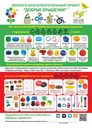 «Добрые крышечки» - это российский, эколого-благотворительный проект 2016 года, - поясняет координатор акции, проводимой в колонии, старший инспектор группы спецучёта КП-31 Елена Корочкина. - В нём может принять участие любой неравнодушный человек, так как в его основе лежит философия милосердия, бережного и заботливого отношения к нашей планете и согражданам. Особую ценность данной инициативы представляет конечный результат - это реальная помощь детям-инвалидам".
