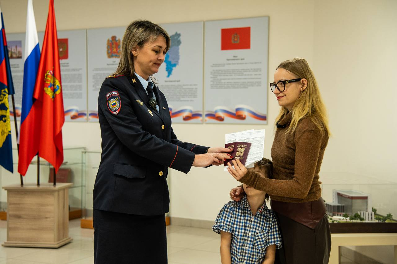 Обновленный документ потенциальной гражданке Российской Федерации вручила начальник отдела управления внутреннеймиграциии краевой полиции Алёна Миронова.