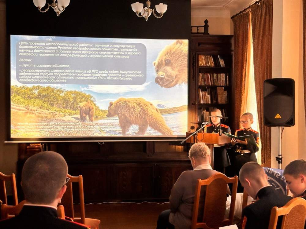 Учащиеся 6 класса Минусинского кадетского корпуса создали набор уникальных сувенирных открыток, посвящённых 180-летию РГО. На ежегодной итоговой встрече Минусинского отделения Русского географического общества кадеты Давид Лео и Максим Урманшин представили научно-исследовательский проект: «Сувенирный набор исторических открыток». Он посвящён юбилею Русского географического общества.