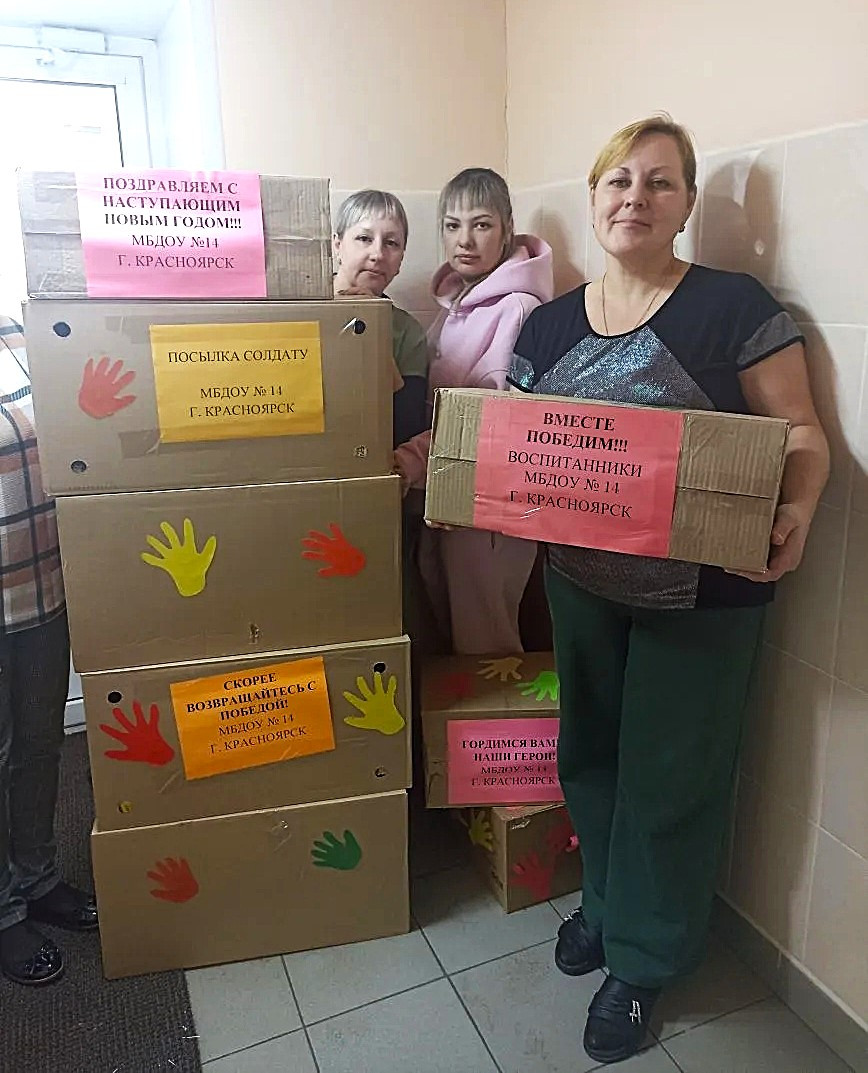 Своих не бросаем! Воспитанники Красноярского детского сада № 14 «Изумрудный город» и их родители знают об этом не на словах, а на деле. В преддверии Нового года коллектив сада (педагоги, родители и воспитанники) совместно с социальными партнёрами - патриотической комиссией совета ветеранов Кировского района Красноярска - принял участие в благотворительной акции «С Новым годом, солдат!».
